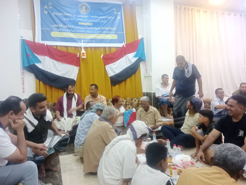 الأمانة العامة لهيئة رئاسة المجلس الانتقالي تقيم أمسية رمضانية ومأدبة افطار جماعي بمديرية المعلا