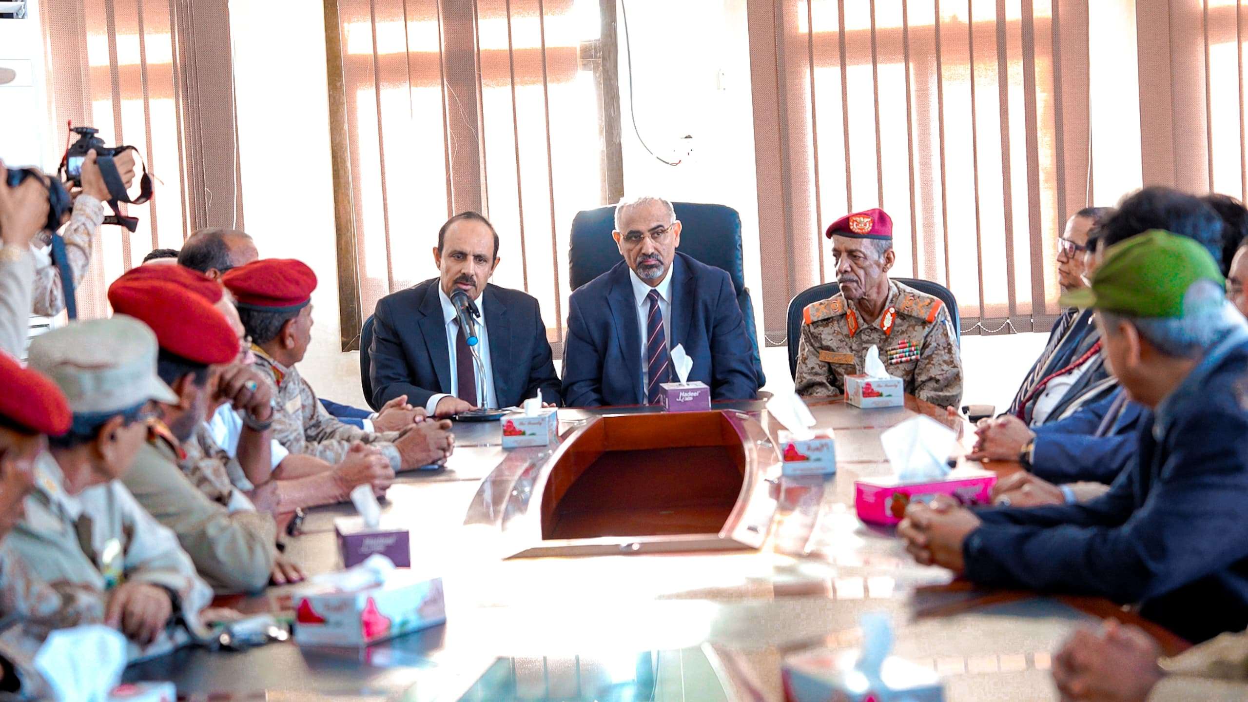 وعقد الرئيس الزُبيدي، خلال الزيارة، اجتماعا بقيادة المنطقة العسكرية الثانية، أشاد في مستهله بالتضحيات الجسيمة التي يقدمها منتسبوا المنطقة في سبيل حماية حضرموت من أي تهديدات أمنية، مؤكدا أن هذه الجهود تحظى بدعم ومساندة مستمرة من القيادة السياسية، باعتبارها القوة الشرعية والوحيدة المخولة بحماية حضرموت، ولا يمكن السماح بأي محاولات لزعزعة الأمن عبر تشكيلات غير قانونية لا تخضع للدولة ومؤسساتها الرسمية.