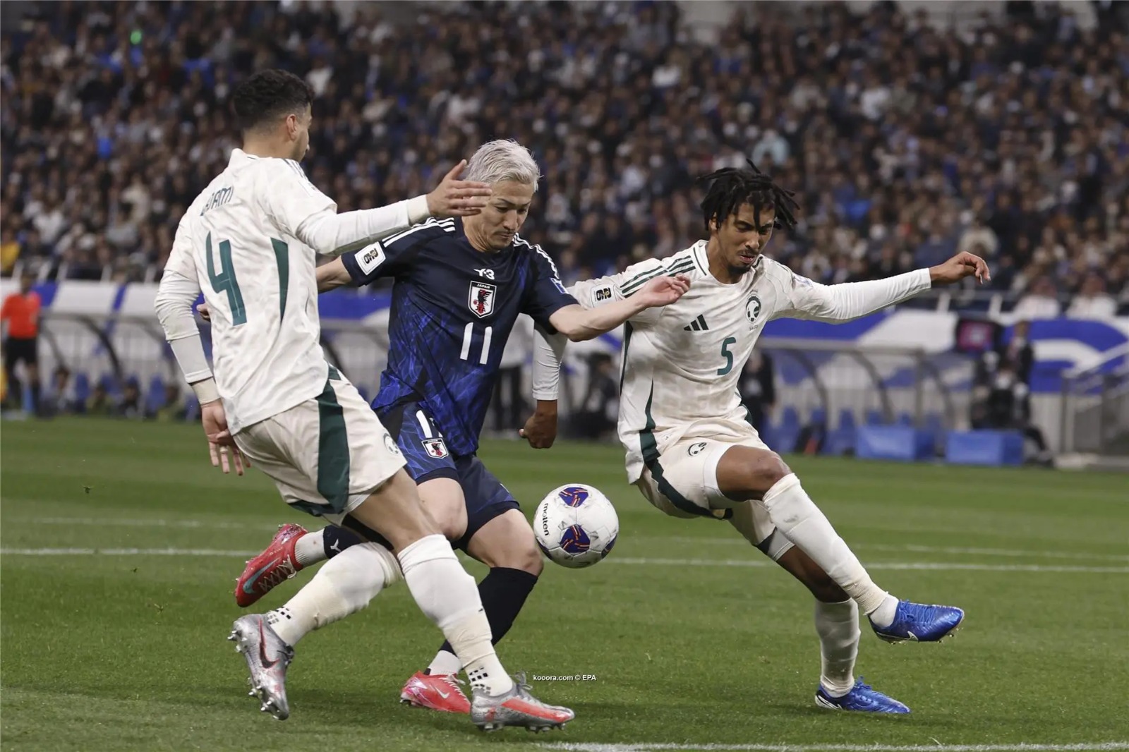 أنهى المنتخب السعودي المواجهة أمام مضيفه الياباني بالتعادل السلبي، في المباراة التي جمعتهما اليوم الثلاثاء، على استاد سايتاما، ضمن منافسات الجولة الثامنة من التصفيات الآسيوية المؤهلة لنهائيات كأس العالم 2026.