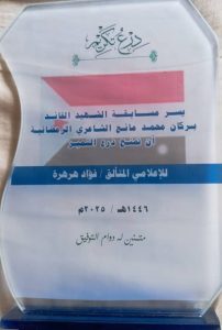 الف الف مبروك على هذا التكريم درع التميز المسابقة للاخ الإعلامي فؤاد هرهره وذلك تستحق المزيد فأنت عين الضالع بأكملها.