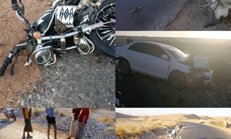 وبحسب مصادر محلية، وقع الحادث عصر امس الثلاثاء، عندما اصطدمت الدراجة النارية التي كانا يستقلانها بسيارة في الطريق بالقرب من مفرق حلفون، وأسفر التصادم عن وفاة الشاب مقبل يحيى باعباد، فيما أصيب رفيقه، عبدالله حمد بن مغيزل، بإصابات متفاوتة.