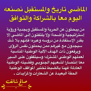 أ/ صالح شائف: الماضي تاريخ والمستقبل نصنعه اليوم معا بالشراكة والتوافق