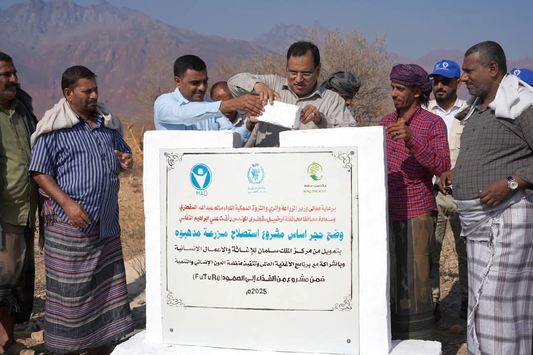 قام وزير الزراعة والري والثروة السمكية اللواء سالم السقطري، ومعه وكيل محافظة أرخبيل سقطرى العميد الركن صالح علي ومدير عام مكتب الزراعة والري في المحافظة يحيى بن ماجد بوضع حجر الأساس لمشروع إنشاء واستصلاح مزرعة مذهوبه النموذجية، وذلك بتمويل من مركز الملك سلمان للإغاثة والأعمال الإنسانية KSR، بالشراكة مع برنامج الأغذية العالميWFP، وتنفيذ منظمة العون الإنساني والتنمية HAD.