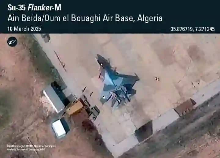 وشوهدت مقاتلة سو-35 روسية الصنع، كانت مطلية سابقًا بالتمويه المصري، في قاعدة جوية جزائرية وقد أعيد طلاؤها بشارات سلاح الجو الجزائري، مما أثار تساؤلات جديدة حول صفقة سلاح تمت بهدوء وكُشف عنها بفضل صور الأقمار الصناعية.