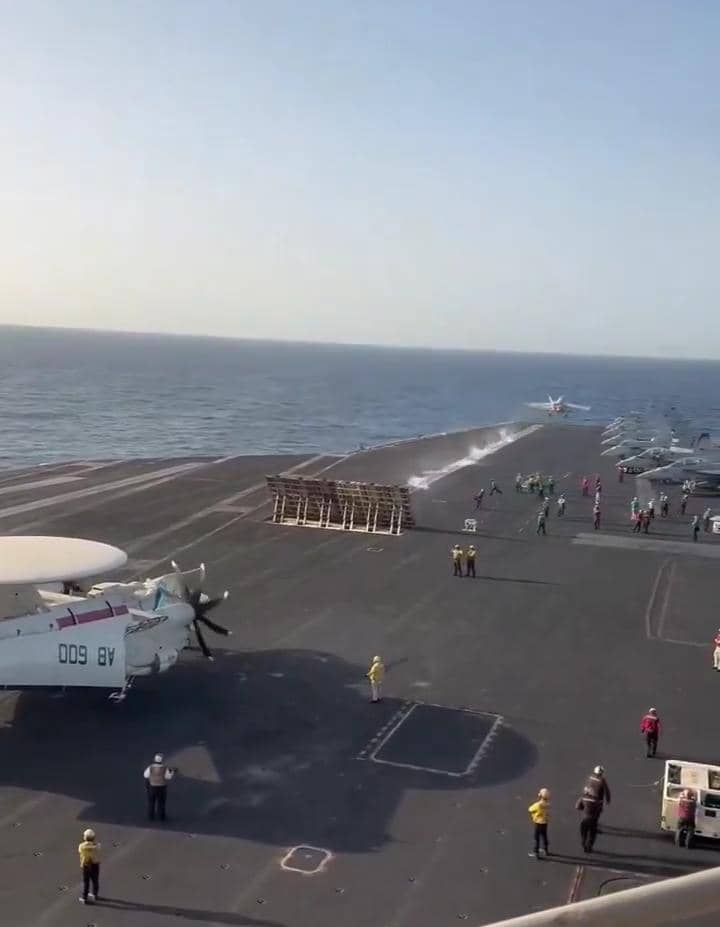 شاهد: قائد حاملة الطائرات الأمريكية “هاري ترومان” يصفع عبدالملك ويرد على تحدي الحوثيين بالصور من قلب المعركة!