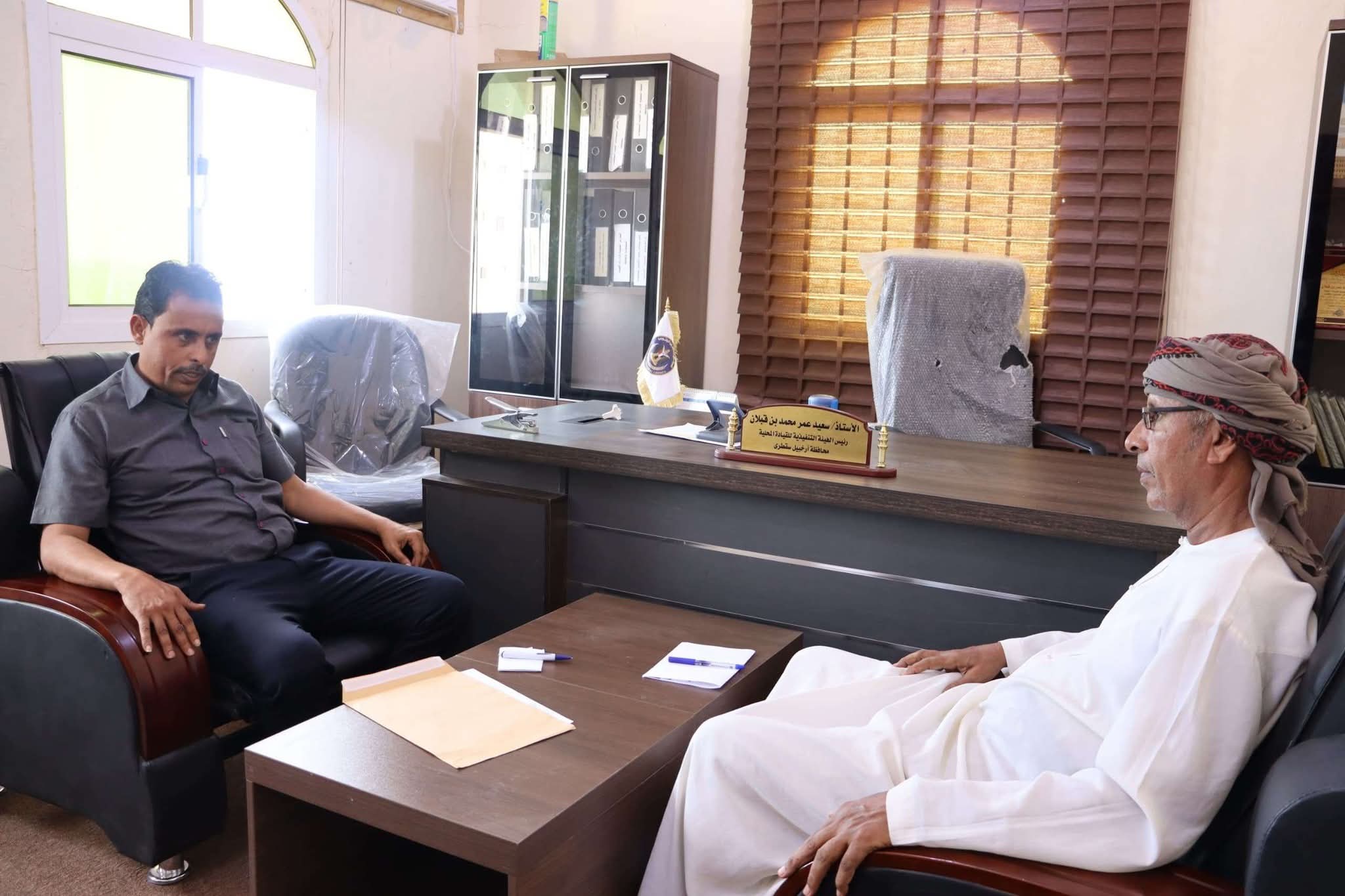 التقى رئيس الهيئة التنفيذية للقيادة المحلية للمجلس الانتقالي الجنوبي في محافظة سقطرى، سعيد عمر بن قبلان، اليوم الاثنين، برئيس نقابة أعضاء هيئة التدريس، مساعد كلية التربية والعلوم الإنسانية والتطبيقية في المحافظة، الدكتور أحمد سالم باعويضان.