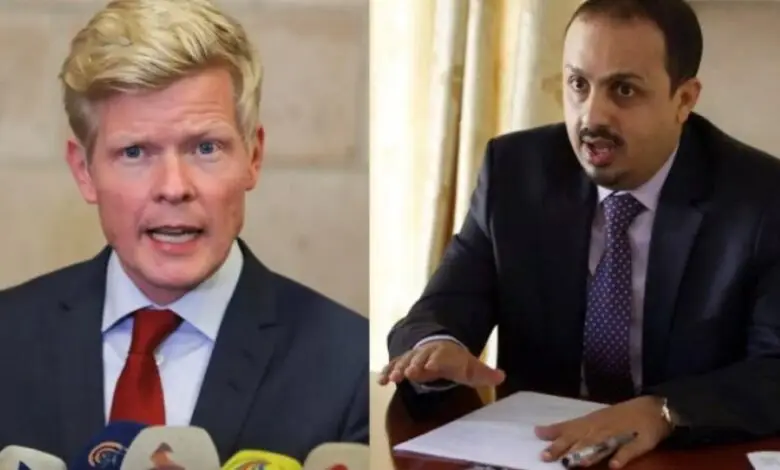 شن وزير الإعلام والثقافة والسياحة (معمر الارياني) هجوما حادا وصف بالعنيف على المبعوث الأممي لدى اليمن (غروندبرغ ) ردا على تصريحاته الاخيرة