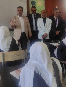 وخلال الفعالية التي رافقه فيها وكيل وزارة التربية لقطاع المشاريع والتجهيزات د. محمد عمر باسليم ومدير إدارة التربية بمديرية المنصورة الاستاذ فيصل الشعبي زار الشوذبي قاعات الامتحانات واستمع من الطالبات عن فترة انقطاعهن عن العملية التعليمية قرابة خمسة أشهر بفعل صراع النقابة وقيادة وزارة التربية وتعرف من مديرة ثانوية عدن النموذجية للبنات الأستاذة بسمة عبدالقادر على مستوى دقة تنظيم وتنسيق العملية الامتحانية وعملية الانضباط والالتزام بقواعد الحضور لدى مراقبي المركز الامتحاني إضافة إلى درجة النظافة التي تتحلى بها ثانوية عدن النموذجية للبنات ومركزي بارباع وخديجة بنت خويلد واستمع إلى الصعوبات التي تم التغلب عليها بإصرار وحماس الطالبات ودعم مكتب التربية بعدن.