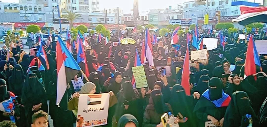 شهدت العاصمة عدن فعالية نسائية طالبت الحكومة بالمعالجة والاسراع بالحلول الجذرية لانقطاع الخدمات وارتفاع الاسعار وإنهيار العملة