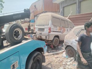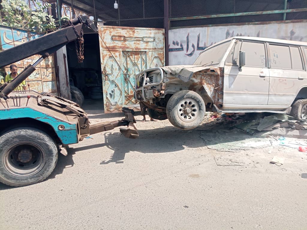 حملة رفع السيارات المتهالكة تواصل أعمالها في مديرية المنصورة بعدن