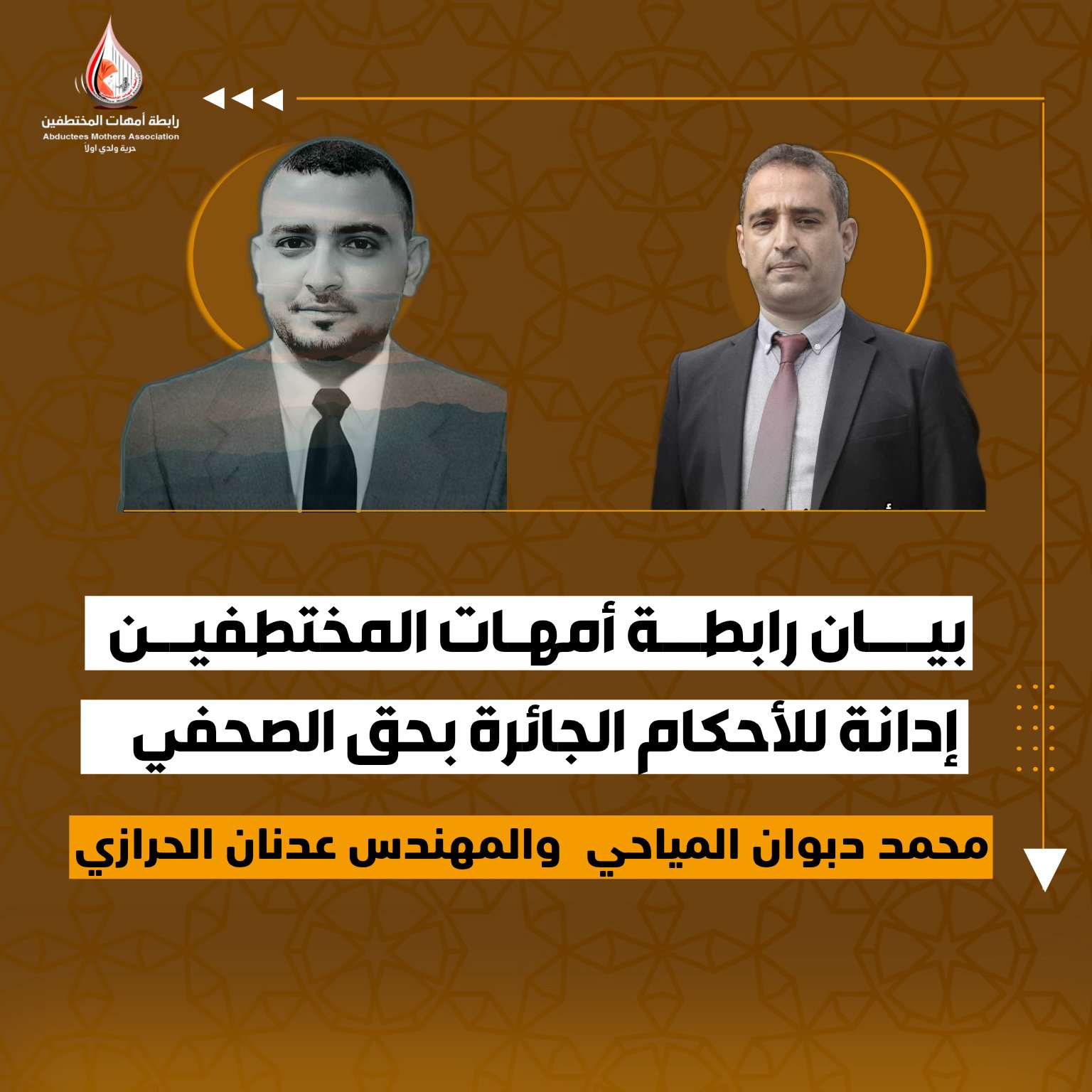 جماعة الحوثي تصدر احكاما جائرة بحق الصحافي اليمني( المياحي) والمهندس /عدنان الحرازي ورابطة امهات المختطفيين تدينها