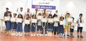 واختُتم الحفل بتكريم الطلاب والطالبات الأوائل وسط أجواء من الفرح والبهجة، ليُسدل الستار على الحفل بأغنية “وحياة قلبي وأفراحه” بأداء الفنان الشاب أيمن الجيلاني الذي أضفى لمسة فنية راقية على المناسبة.