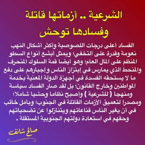 هذا ماتحدث به أ/ صالح شائف : الشرعية .. أزماتها قاتلة وفسادها توحش