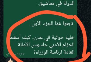 سقطت خلية تجسس حوثية من داخل مؤسسة حكومية سيادية في عدن.