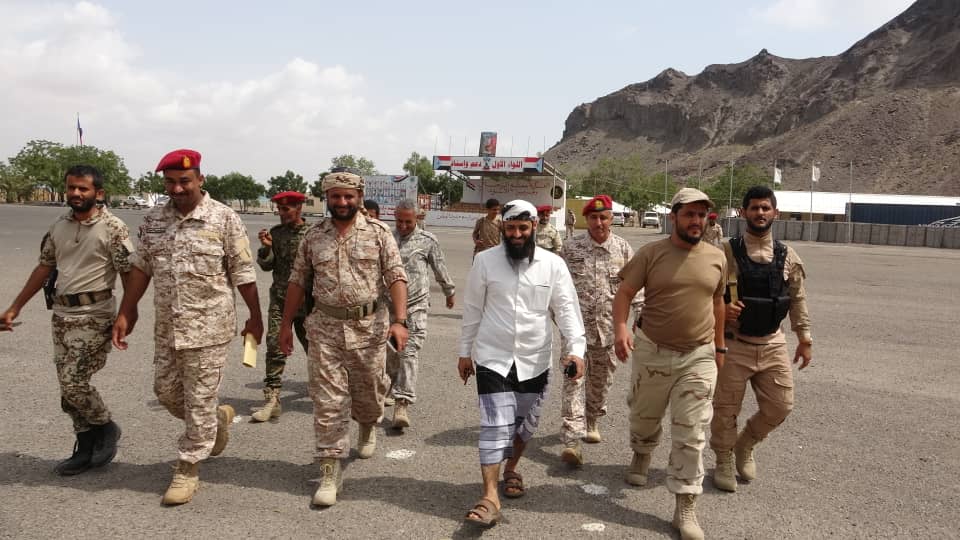 زار القائد العام لالوية الدعم والاسناد الشيخ محسن الوالي ومعه العميد نبيل المشوشي صباح الاربعاء معسكر اللواء الاول دعم وإسناد بعدن.