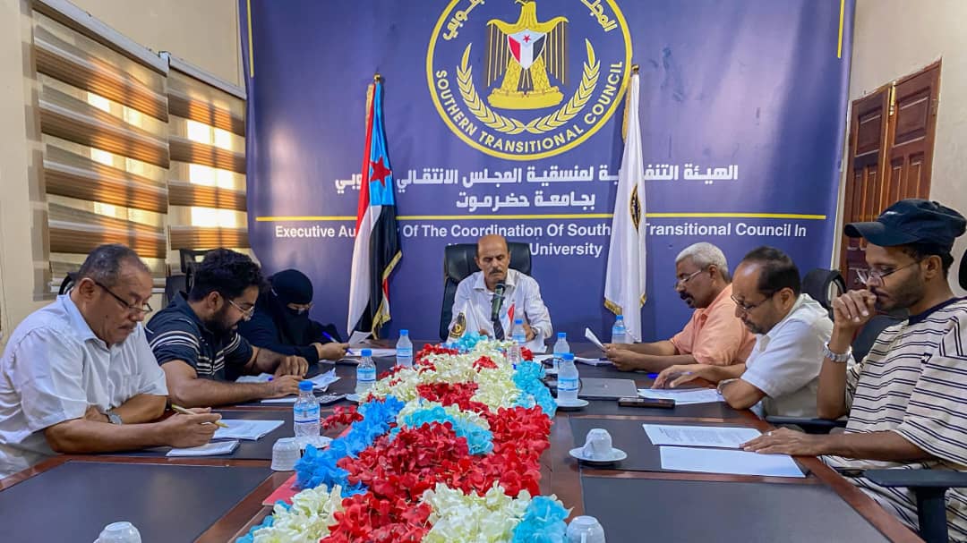 عقدت الهيئة التنفيذية لمنسقية المجلس الانتقالي الجنوبي في جامعة حضرموت اليوم، اجتماعها الدوري الثاني لشهر يونيو لعام 2025، برئاسة رئيس المنسقية د. حسن الغلام العمودي، بحضور أعضاء الهيئة.