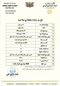 من جانبه اعلن البنك المركزي عدن اليوم الاحد الموافق 29/6/2025 عن نتائج المزاد رقم 14-2025 لبيع عملة اجنبية والتي اعلن عنها يوم الاحد الماضي