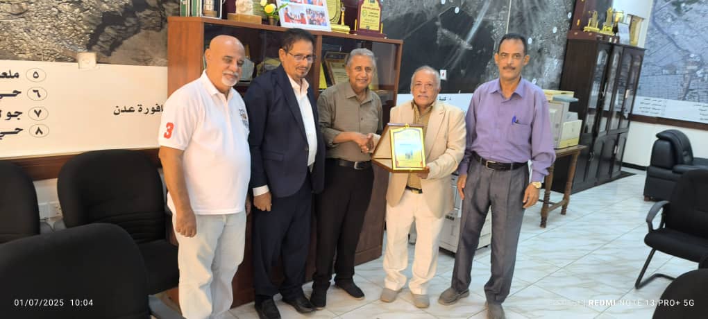 وقدّمت النقابة خلال الزيارة درعاً تكريمياً للمهندس قائد راشد أنعم، في بادرة شكر “وإن تأخرت” إلا أنها جاءت لتؤكد أن الوفاء لا يسقط بالتقادم، وأن من يزرع الخير يُذكر بالخير.