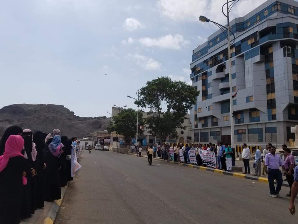 اللجنة التنسيقية للمعينين أكاديمياً في جامعة عدن تنفذ وقفة احتجاجية أمام مقر الحكومة بعدن