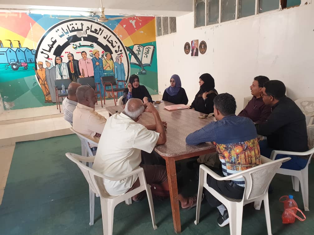التقت الأخت ميرفت السلامي رئيسة النقابة العامة للمصارف والتجارة والتأمينات والأعمال الماليه صباح هذا اليوم الثلاثاء الموافق 18 فبراير 2020 بجميع نقابات المصارف وهي نقابه البنك المركزي ونقابة البنك الأهلي ونقابة بنك الإنشاء والتعمير للفروع الإسلامية ومكتب الضرائب والجمارك والمالية ومؤسسة التأمينات الاجتماعية والتأمينات والمعاشات وجرى النقاش حول كل مطالبهم الحقوقيه والمستحقة والذي طالت ولم يتم الاستجابة اليها .