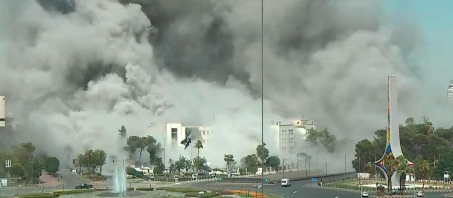 شنت المقاتلات الإسرائيلية غارة جوية عنيفة اليوم الأربعاء على مبنى قيادة الأركان السورية في دمشق، وظهرت الغارة في بث مباشر لقناة التلفزيون السوري الرسمي. وقصف الطيران الإسرائيلي مبنى الأركان العامة السورية المقابل لمبنى الهيئة العامة للإذاعة والتلفزيون السوري في ساحة الأمويين.