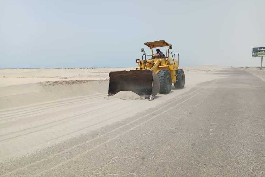 وتأتي هذه الحملة استجابة لحالة التكدس الكثيف للكثبان الرملية التي خلفتها الرياح خلال الأيام الماضية، والتي باتت تشكل خطرًا على سلامة المسافرين والمركبات، وتهدد بوقوع حوادث مرورية على الطريق الحيوي.