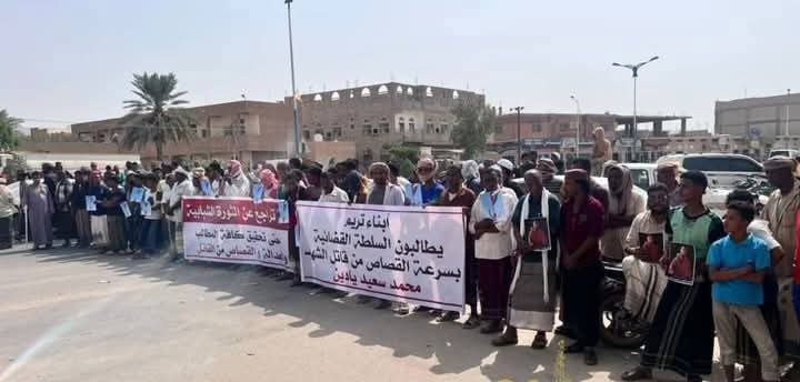 ورفع المحتجون شعارات تدين الجريمة التي أودت بحياة الشهيد يادين، مطالبين بمحاسبة الجناة وتقديمهم للعدالة، كما طالبوا بإقالة مدير أمن مديرية تريم ومدير عام المديرية، مؤكدين أن “دم الشهيد لن يذهب هدرًا”.