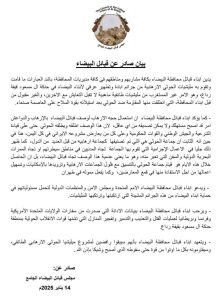 – ويدعو ابناء قبائل محافظة البيضاء الامم المتحدة ومجلس الامن والمنظمات الدولية لتحمل مسئولياتهم في حماية ابناء البيضاء من هذه الجرائم المشينة التي ارتكبتها وترتكبها المليشيات.