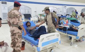 وقال العميد المعكر: عليكم الالتزام بتعليمات الاطباء وتناول الأدوية بوقتها المحدد حتى تماثلكم للشفاء والعوده الى جانب اخوانكم في الخطوط الامامية وتنفيذ المهام العسكرية.
