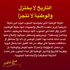 أ/ صالح شائف: التاريخ لايختزل والوطنيةلا تتجزأ