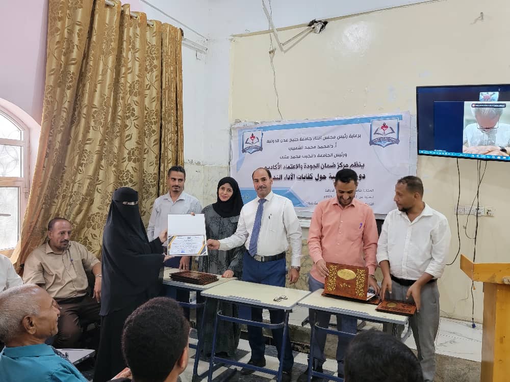 اختتام دورة تدريبية حول كفايات الأداء التدريسي لأعضاء هيئة التدريس بجامعة خليج عدن الدولية