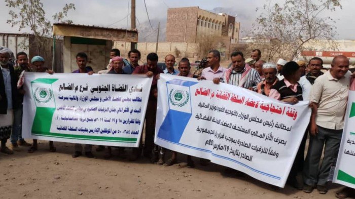 وقفة احتجاجية لقضاة الضالع يطالبون بصرف المزايا المالية للترقيات