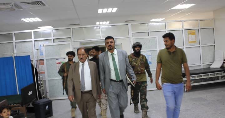 للاطلاع على مستوى الخدمات الطبية.. فريق التوجيه والرقابة الرئاسي وقيادة السلطة المحلية في زيارة إلى مستشفى الضالع المركزي