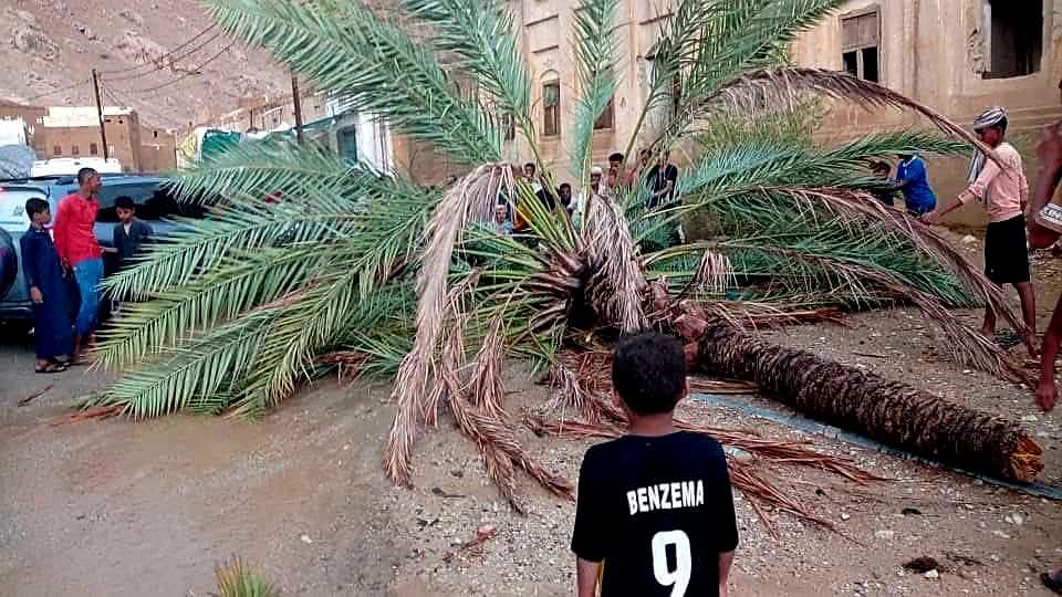 عاصفة رياح تقتلع اشجار النخيل في حضرموت