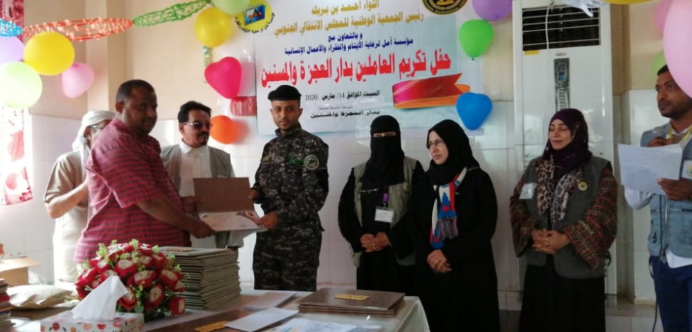 وقد نظمت مؤسسة امل لرعاية الأيتام والفقراء والاعمال الانسانية في العاصمة عدن الحفل التكريمي للتعبير عن تقدير المجتمع لدور العاملين في دار رعاية المسنين.