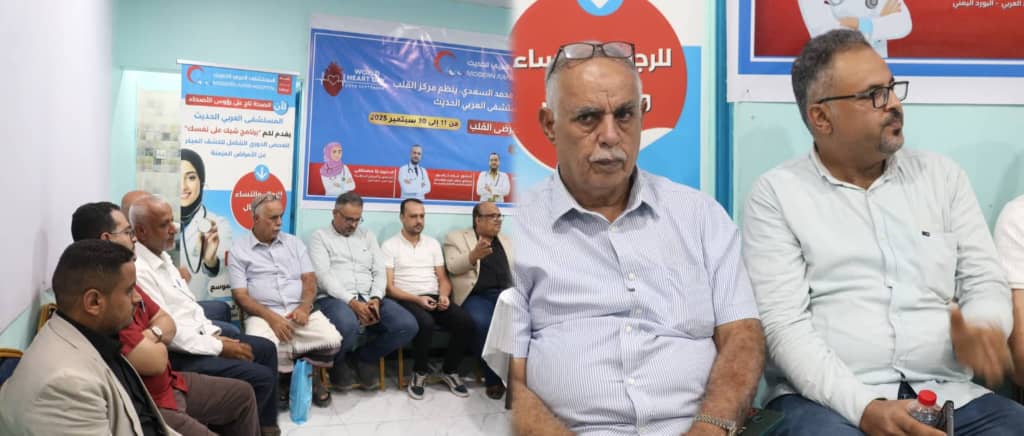 دشن المستشفى العربي الحديث في العاصمة عدن صباح اليوم وبالتنسيق مع جمعية أطباء قلب عدن فعاليات الاحتفاء باليوم العالمي للقلب الذي يصادف ال25 من سبتمبر من كل عام بتنظيم محاضرة توعوية بأمراض القلب واطلاق فعالية الدعم المجتمعي لمرضى القلب التي تشمل حزمة من الخدمات التشخيصية والعلاجية النوعية لمرضى القلب منها المعاينة والفحوصات وتخطيط القلب والايكو القلبي وخدمات القسطرة القلبية التشخيصية والعلاجية ( تركيب دعامات ) برسوم مدعومة ومخفضة.