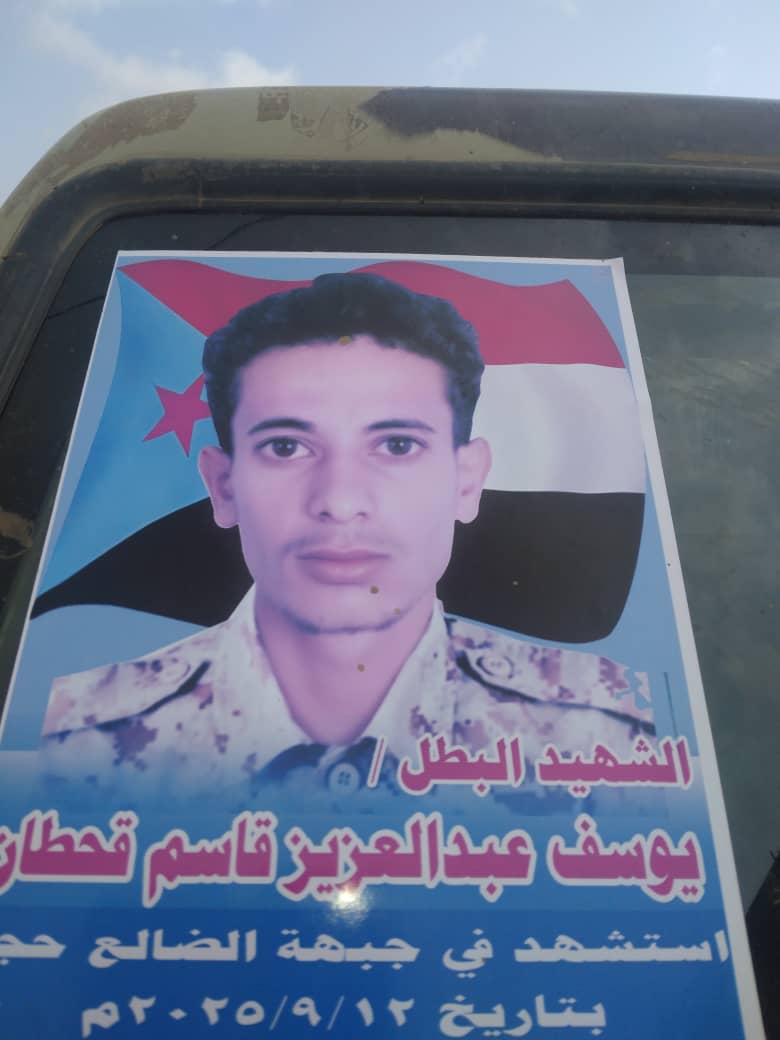 بمزيد من الفخر والاعتزاز ننعي استشهاد الشاب البطل يوسف عبدالعزيز قاسم قحطان العطري الحريري، الذي ارتقت روحه الطاهرة صباح الجمعة الموافق 12 سبتمبر 2025م، وهو يقاتل في الخطوط الأمامية دفاعًا عن الضالع والجنوب