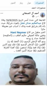 اصيبت أسرة الصحفي/ عبدالحكيم عدنان فضل الأمين العام لمنتدى أصدقاء الإعلاميين والصحفيين ، بصدمة كبيرة كادت تشكل خطراً على صحة والده ووالدتة ، حين علمت عبر منشور على مواقع التواصل الإجتماعي الفيسبوك بصفحة المدعو (أحمد الصنعاني) يروج فيه كذباً عن وفاة الصحفي عبدالحكيم عدنان انتحاراً بالشنق.