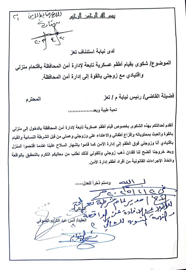وعليه فإننا نطالب مدير أمن محافظة تعز ومدير البحث الجنائي بسرعة ضبط المتورطين كافة في هذه الجريمة وإعادة المسروقات التي نهبت بالإكراه وتقديم الجناة إلى القضاء لينالوا جزاءهم العادل كما نؤكد أن استمرار سياسة الإفلات من العقاب والتغاضي عن مثل هذه العصابات سيؤدي إلى انهيار ثقة المواطن بمؤسسات الدولة ويشكل تهديدا مباشرا للسلم المجتمعي ويحول الأجهزة الأمنية من حامية للعدالة إلى شاهد صامت على جرائم ترتكب في وضح النهار