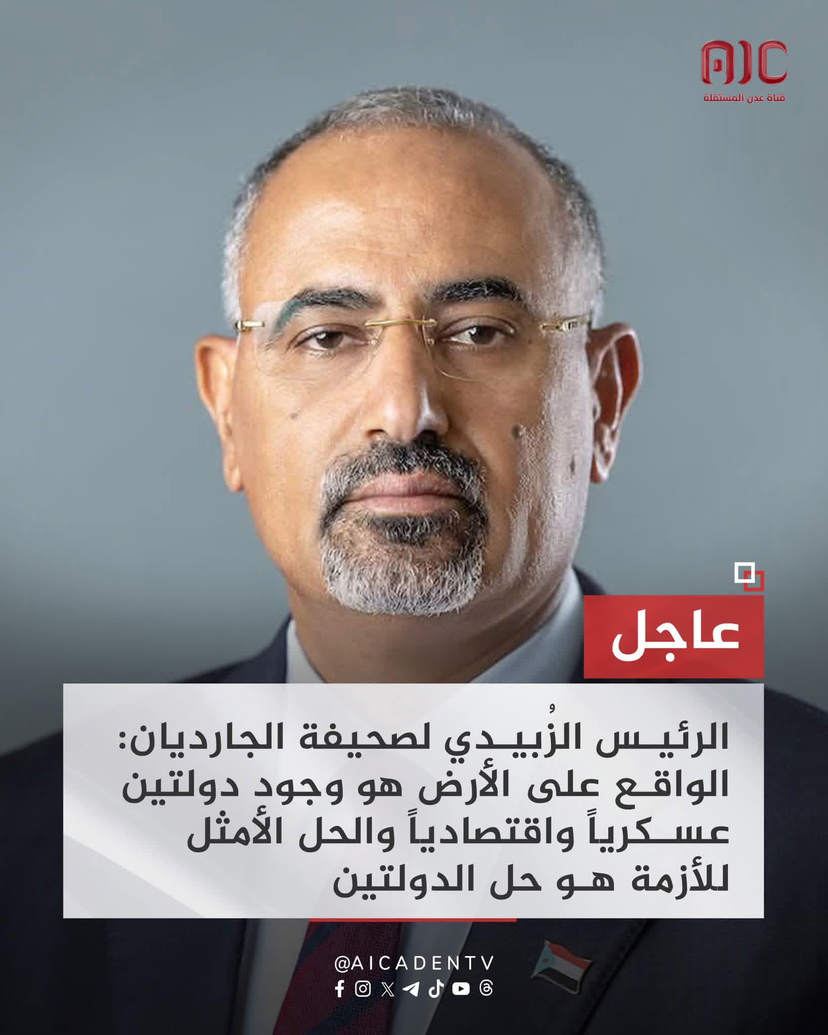 الرئيس الزُبيدي لصحيفة الجارديان البريطانية: الواقع على الأرض وجود دولتين عسكرياً واقتصادياً والحل الأمثل للأزمة حل الدولتين