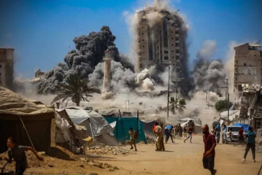 كما استخدم جيش الاحتلال أسلحة جديدة في عملياته، حيث فجّر ثلاثة روبوتات متفجرة في حي الصبرة جنوبي غزة، في حين أطلقت طائرة مسيّرة نيرانها باتجاه منازل المدنيين في البلدة القديمة، ما خلّف دمارًا واسعًا وحالة من الذعر بين الأهالي.
