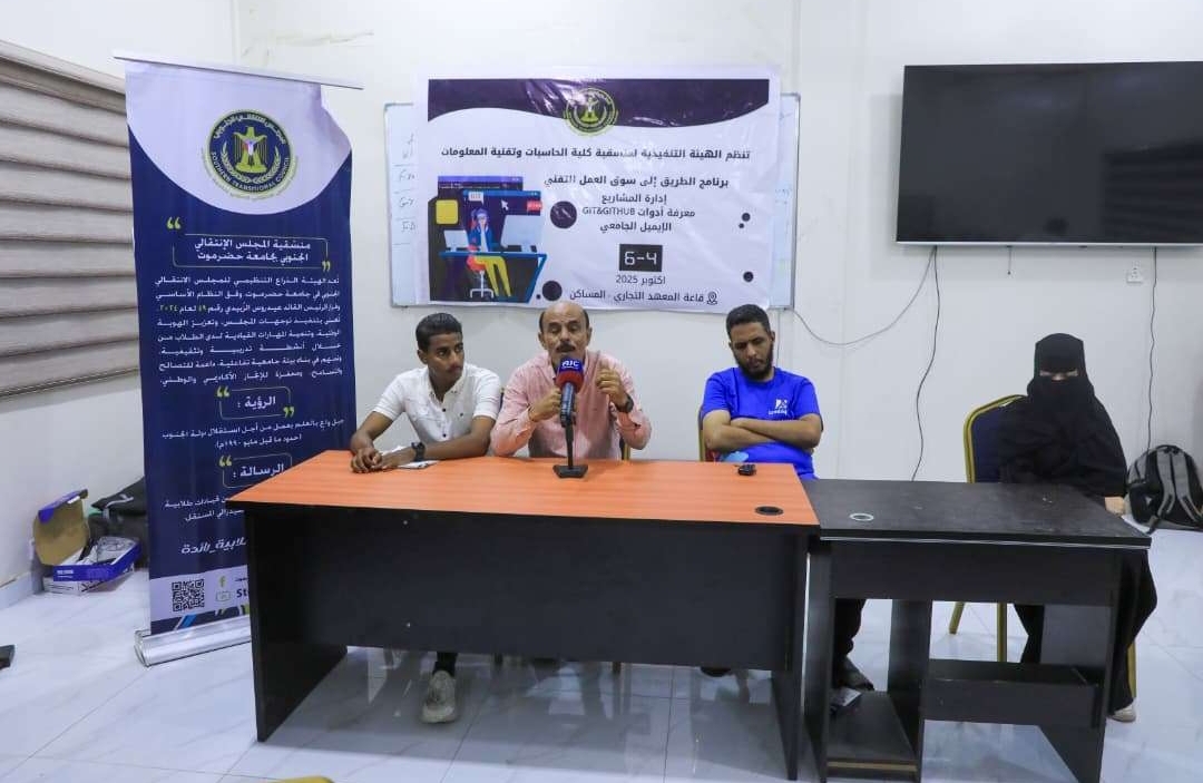 اختتمت منسقية المجلس الانتقالي الجنوبي في كلية الحاسبات وتقنية المعلومات بجامعة حضرموت، أمس الثلاثاء، فعاليات برنامج “الطريق إلى سوق العمل التقني”، الذي استمر أربعة أيام متواصلة حافلة بالتدريب والمعرفة والتطبيق العملي والتعليم التقني.