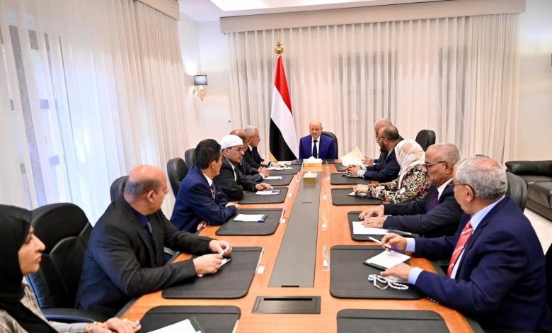 وكان الدكتور رشاد محمد العليمي، رئيس مجلس القيادة الرئاسي، التقى اليوم السبت، الفريق القانوني المساند للمجلس، برئاسة القاضي حمود الهتار.