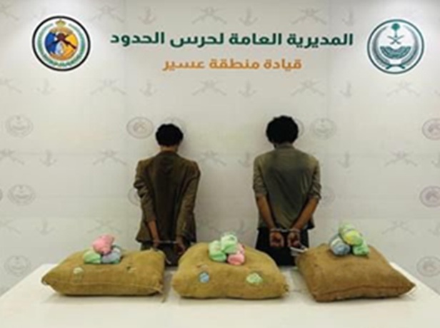 قبضت دوريات حرس الحدود السعودي في قطاع الربوعة بمنطقة عسير، جنوبي المملكة اليوم الخميس على مخالفين اثنين لنظام أمن الحدود من الجنسية اليمنية متهمين بتهريبهما (66) كيلوجرامًا من نبات القات المخدر.
