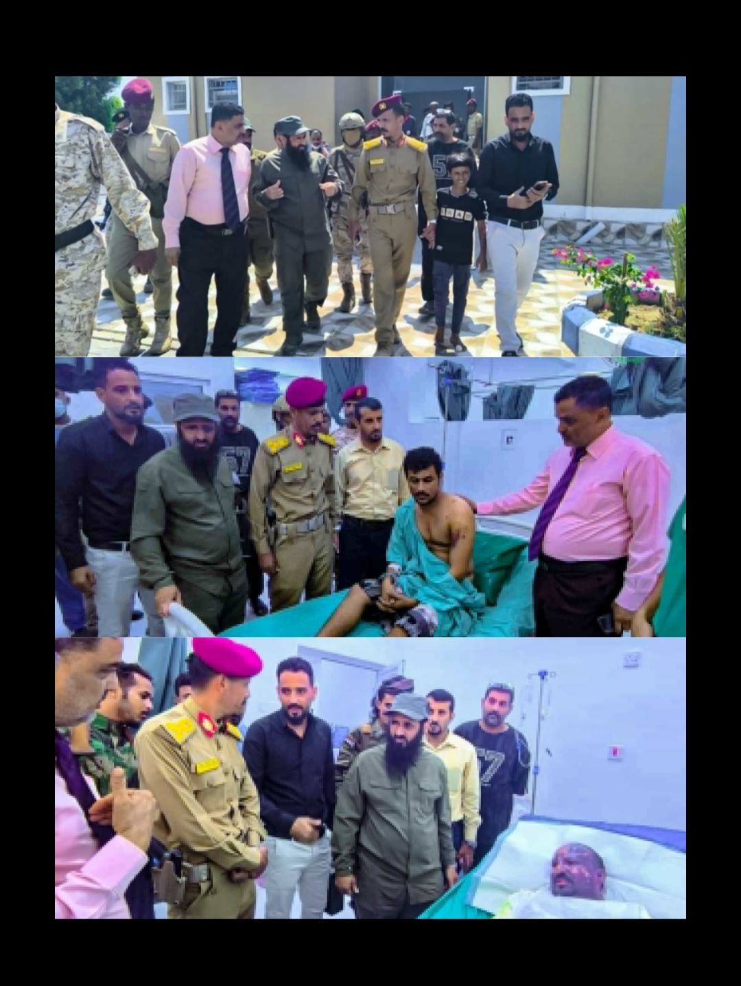 أثناء زيارتهما جرحى هجوم المحفد الإرهابي في مستشفى عبود العسكري في العاصمة عدن.. العميدان الوالي واليافعي يؤكدان
