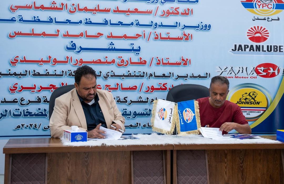 ووقع الاتفاقيات عن جانب شركة النفط بعدن المدير العام الدكتور صالح الجريري ضمن خطة الشركة الرامية إلى توسيع نشاطها في مجالي تسويق الزيوت والمشتقات النفطية وقطع الغيار.