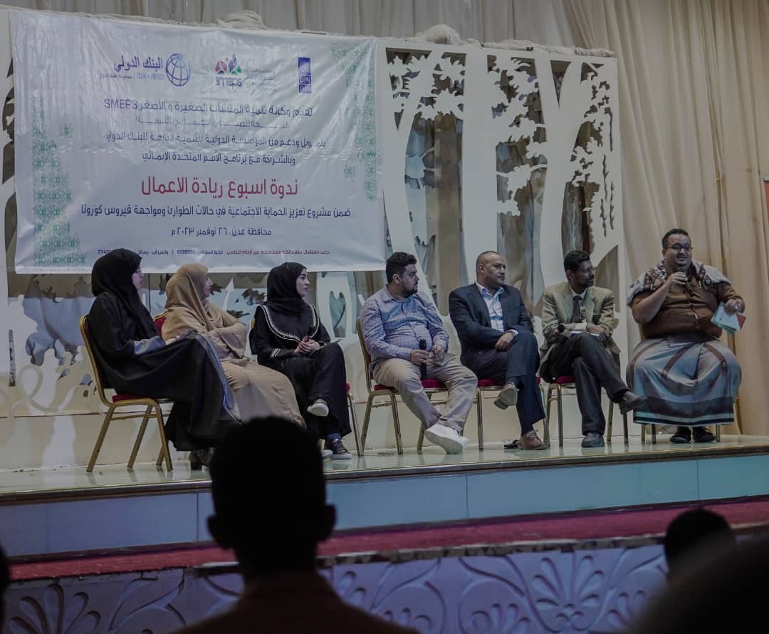 قامت وكالة تنمية المنشآت الصغيرة والاصغر (سميبس) التابعة للصندوق الاجتماعي للتنمية بتمويل ودعم من المؤسسة الدولية للتنمية التابعة للبنك الدولي وبالشراكة مع برنامج الأمم المتحدة الإنمائي بتنظيم ندوة (اسبوع ريادة الأعمال) بحضور ومشاركة الغرفة التجارية والصناعية في عدن.