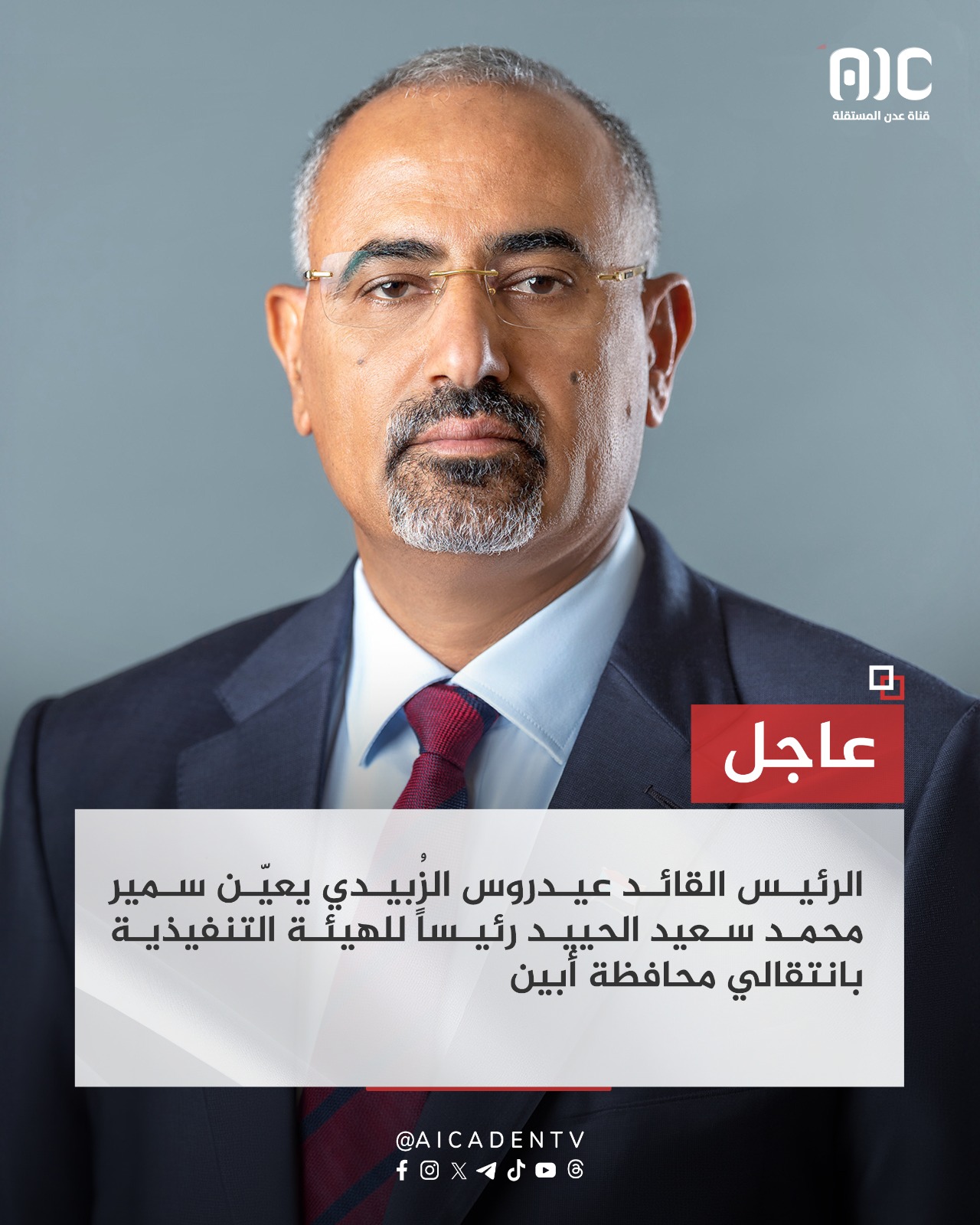 #عاجل: الرئيس القائد (عيدروس الزُبيدي) يصدر قرارا تعيين رئيسا للهيئة التنفيذية للمجلس الانتقالي الجنوبي محافظة ابين