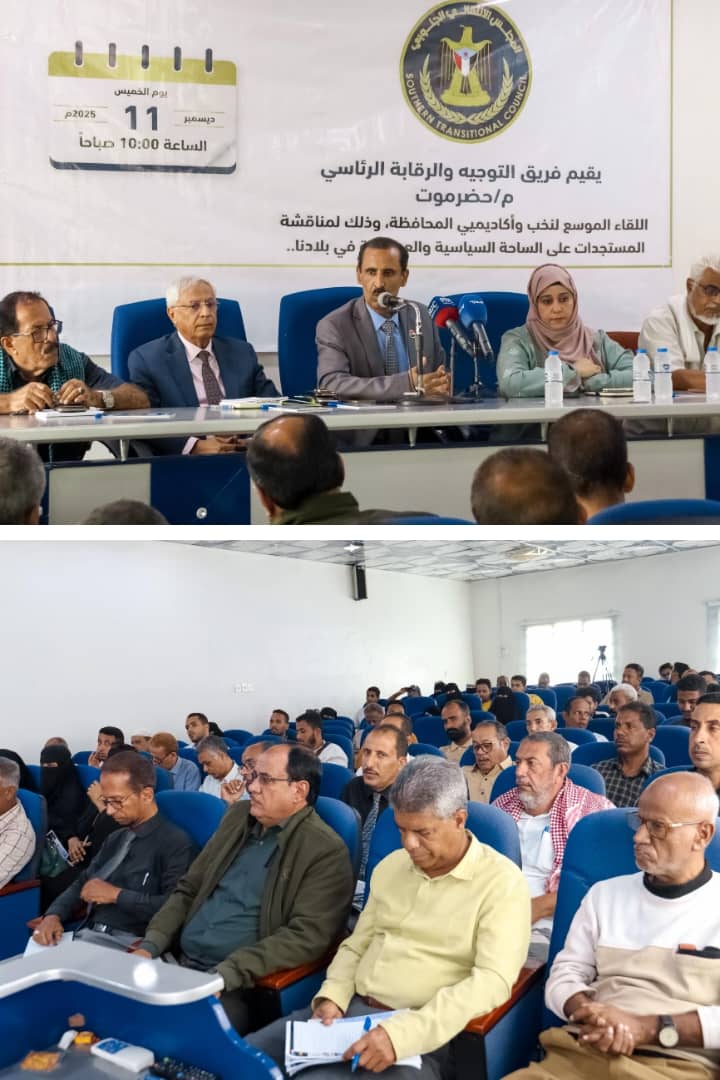 فريق التوجيه والرقابة الرئاسي يُنظم لقاء موسع مع أكاديميين وسياسيين بحضرموت