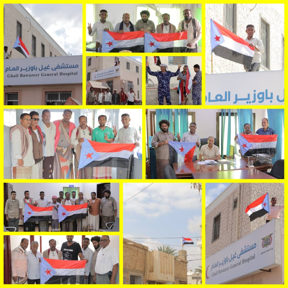 دشّنت القيادة المحلية للمجلس الانتقالي الجنوبي بمديرية غيل باوزير، اليوم الأحد، حملة رفع أعلام دولة الجنوب العربي على مباني ومكاتب الإدارات الحكومية في المديرية.